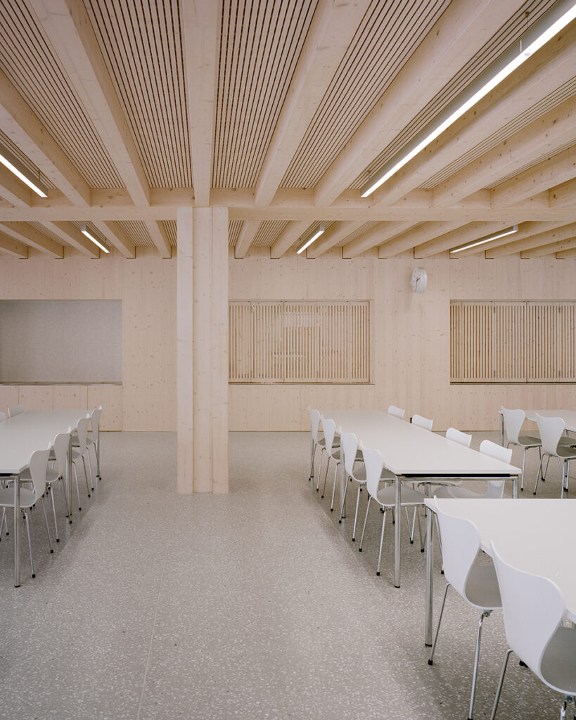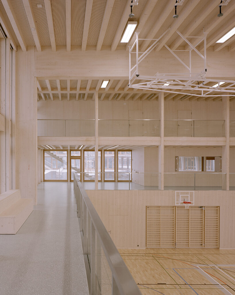 Réalisation de trois bâtiments publics (école primaire, bâtiment parascolaire, salle omnisports) ainsi que d’une école spécialisée au sein d’un éco‐quartier comprenant près de 1000 nouveaux logements. Durant la phase de construction, des mesures sont prises afin de respecter les exigences du label Minergie‐Eco, telles mise en place d’un concept de protection du sol, utilisation de machines de chantier respectant les critères d’émission de particules, utilisation rationnelle de l’eau potable sur le chantier, etc. Les matériaux choisis pour l’ensemble de la structure porteuse sont du béton‐armé, du bois lamellé‐collé ainsi que ponctuellement du métal. Ce choix vise à utiliser de façon rationnelle les performances globales des matériaux pour répondre de manière pertinente et équilibrée aux contraintes architecturales, structurales, environnementales et économiques du projet.